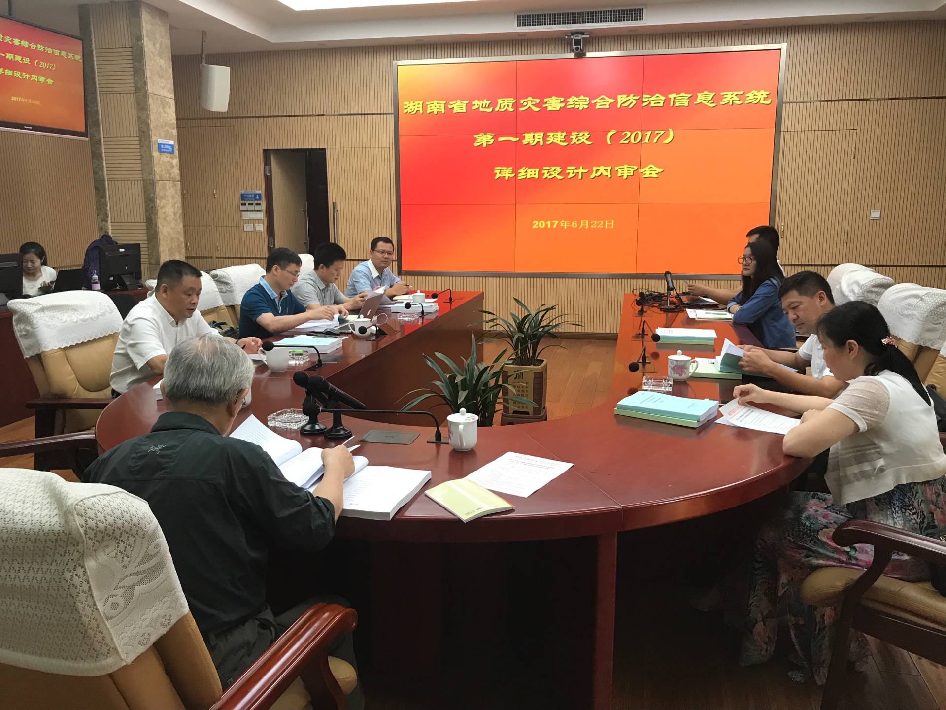 我公司中标项目 “湖南省地质灾害综合防治信息系统建设(2017)” 于2017年6月22日在长沙召开详细设计审查会,由湖南省国土资源厅、省地质环境监测总站、省气象信息中心、省气象台等专家领导、实施单位相关负责人及我公司董事长赵新兵协同我公司的项目小组成员一同参加了会议。