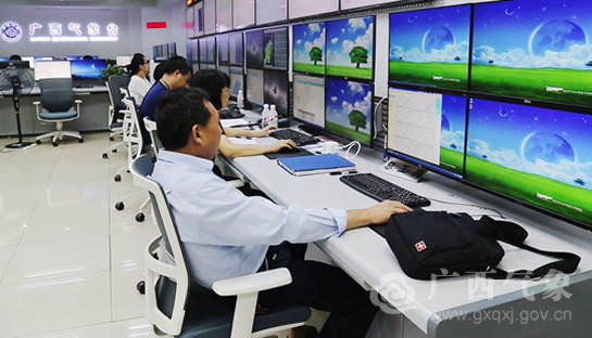 广西气象监测预报中心,自治区气象台预报员调取资料研判最新天气情况